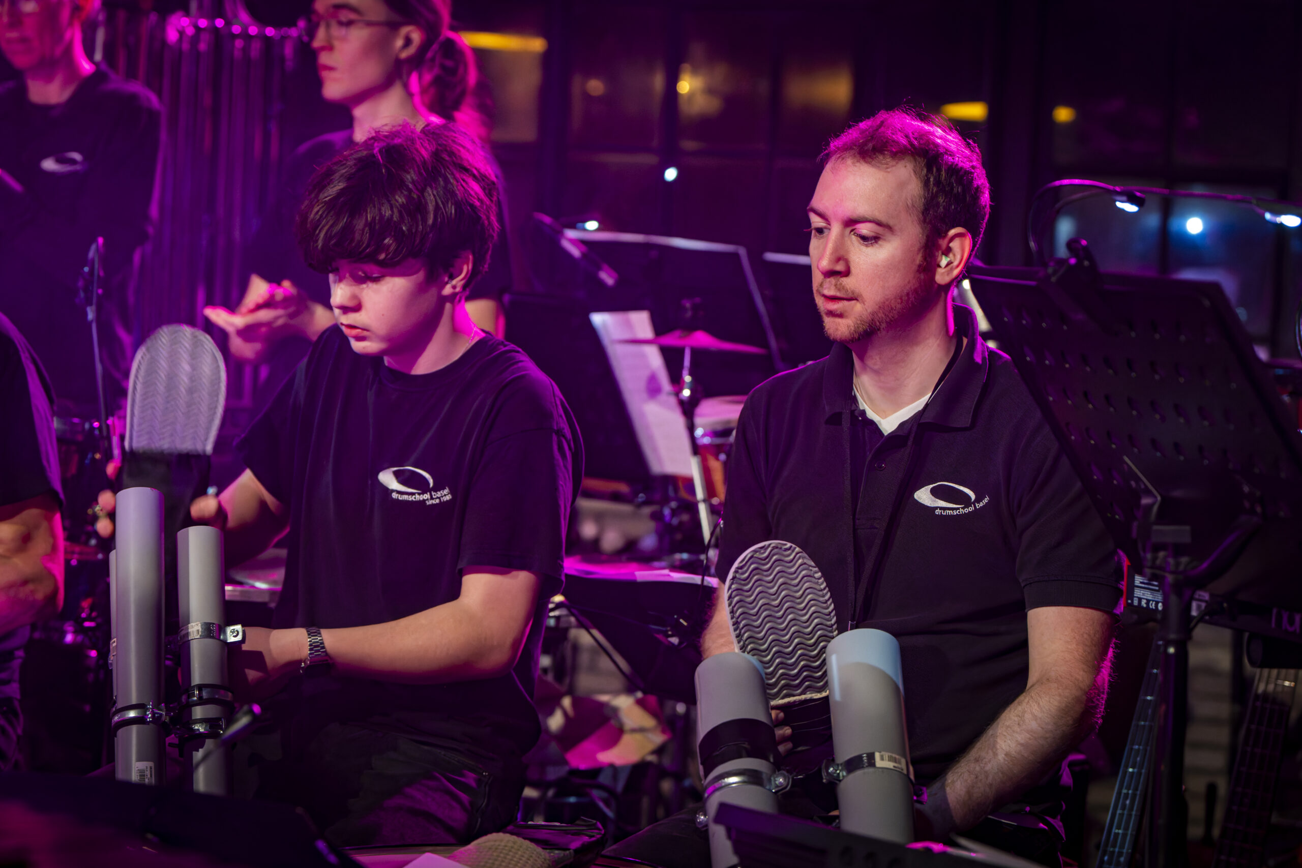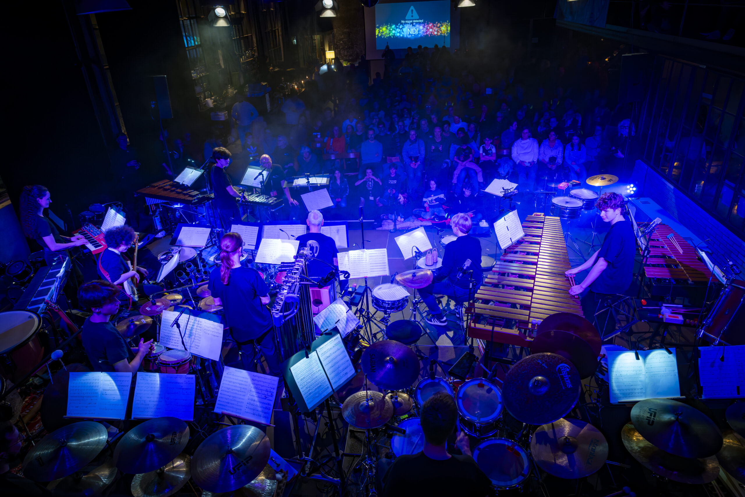 Am 24. Januar 2026 feierte die drumschool basel ihr 40-jähriges Jubiläum mit einem ausverkauften Konzert in der Walzhalle Münchenstein. Ein einzigartiges Schlagwerk-Orchester  bestehend aus Profis, Nachwuchstalenten und engagierten Laien interpretierte eigens komponierte Werke von Cyrill Lützelschwab. Seit 1986 begeistert das Ensemble in wechselnder Besetzung mit aussergewöhnlichen Projekten und grossen Formationen.